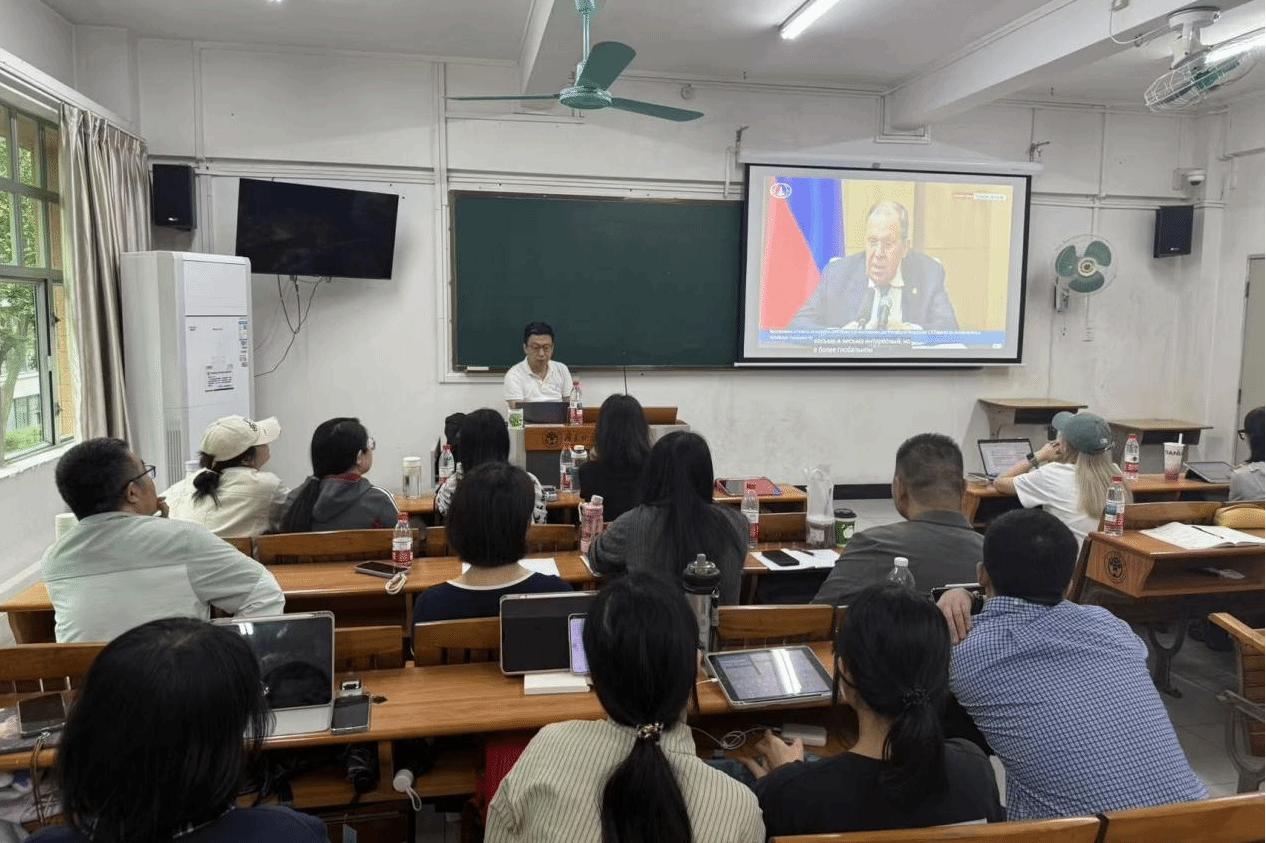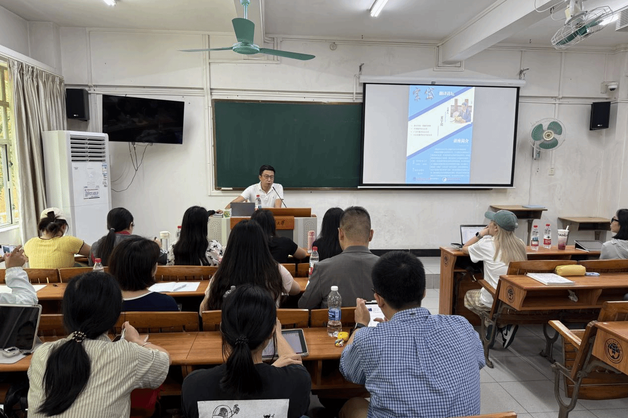 本网讯 2026年4月17日14:00宗岱翻译讲坛在白云山校区二教230教室举行。国家一级翻译、中国翻译协会会员夏宇亮老师应邀为司机社 俄语系师生作题为《数智时代会议口译人机翻译对比与协作模式探索》的专题讲座。俄语系主任陈欢主持讲座,俄语系研究生负责人姜超老师出席,俄语系师生积极参与互动,现场氛围活跃。